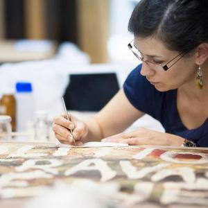 Aguerrie pour intervenir sur les œuvres non vernies, peintures mates, techniques mixtes, collages, en relief, œuvres monochromes, peinture industrielle, résine, cire, matériaux hétéroclites, vieillissements accélérés, matière organique et feuilles métalliques (spécialiste des peintures de Hans Hartung et Anna Eva Bergman)